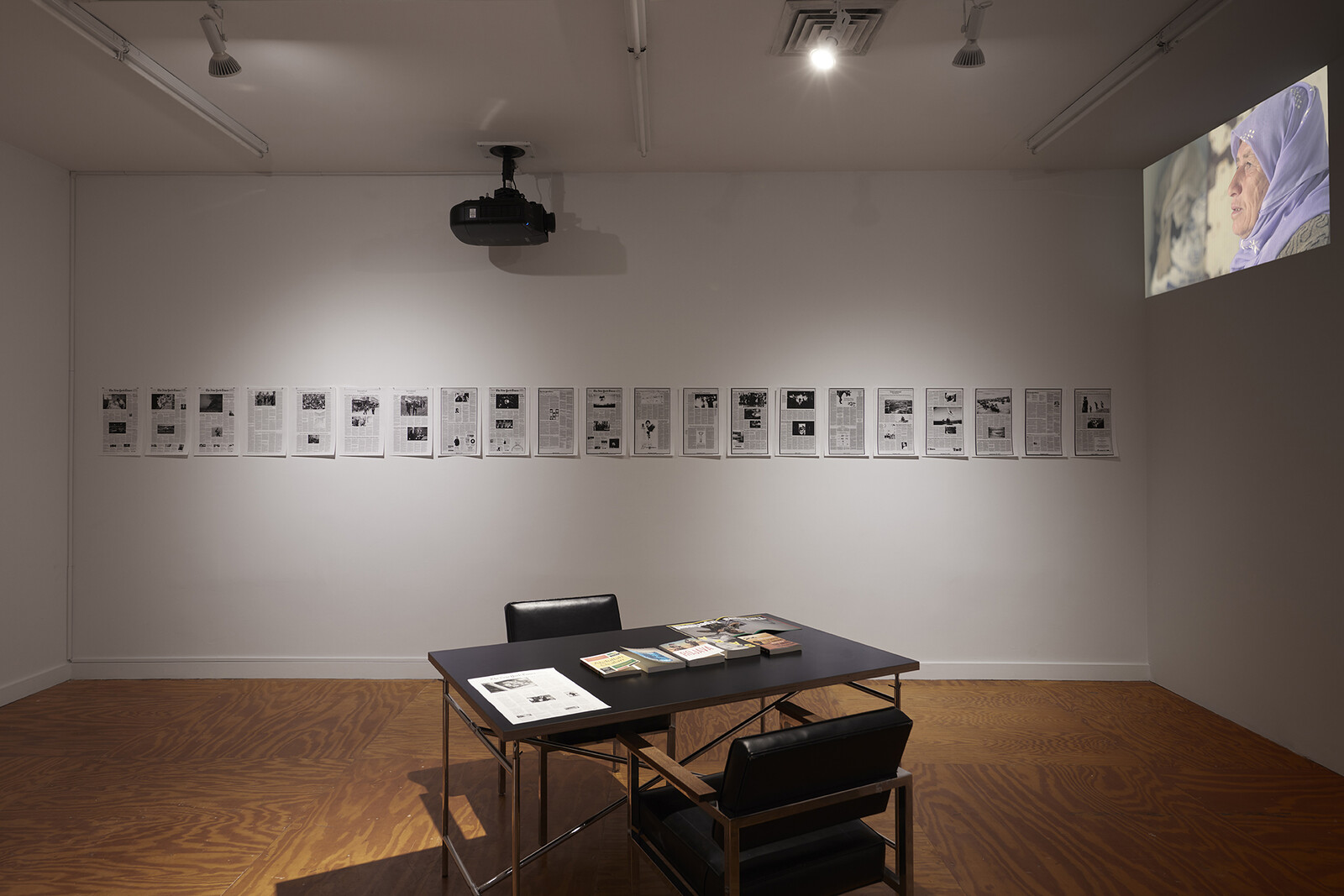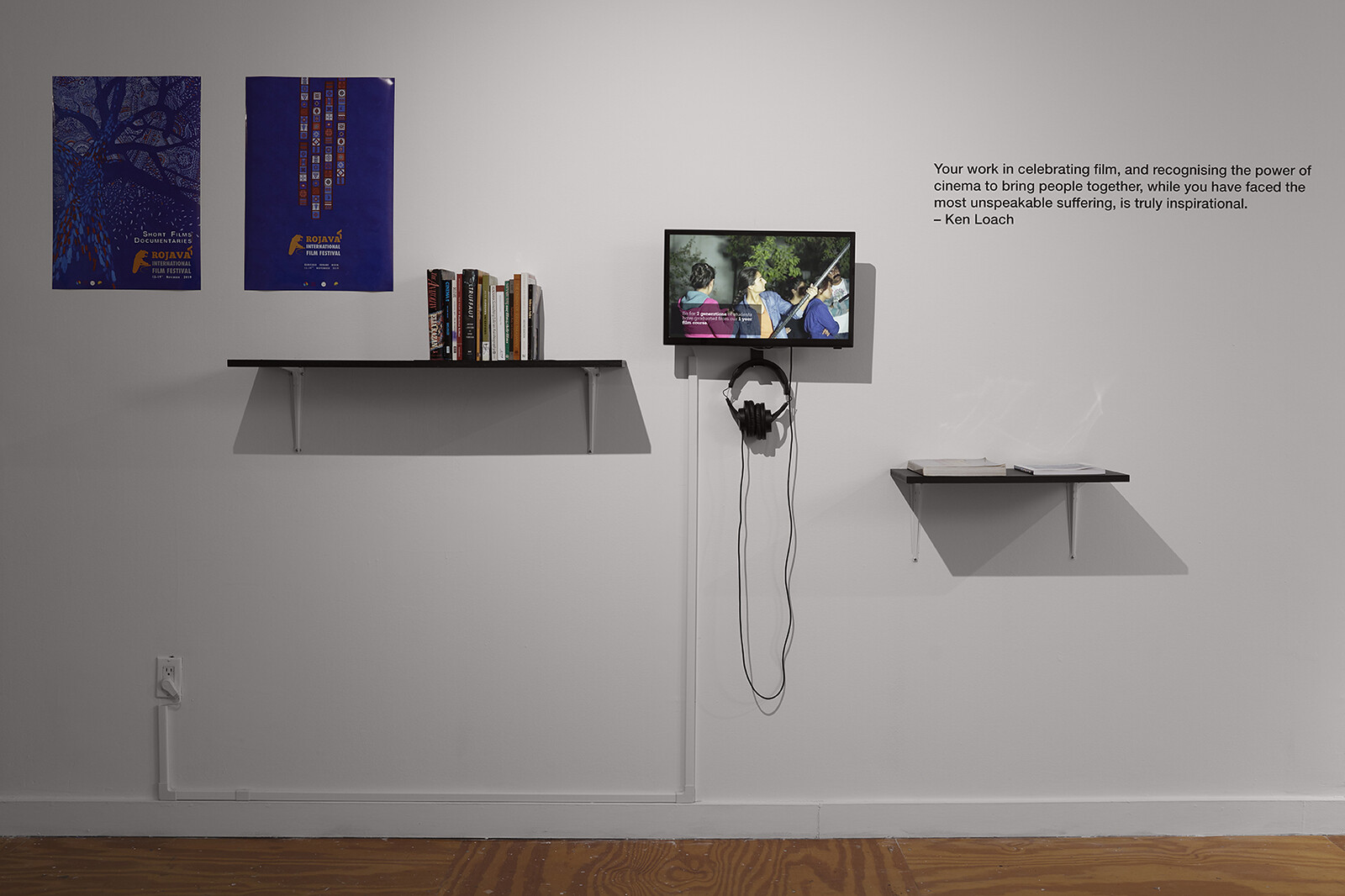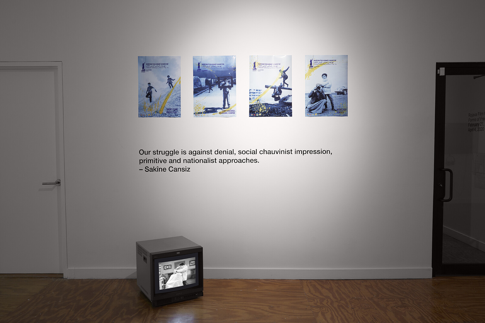 Initially set to run through April 4, the exhibtion, as many others in New York and around the world, was paused on March 12. Here we share with you some installation views of their show at e-flux and a selection of stills from their films. We hope you will enjoy them as much as we have enjoyed putting this exhibition together and presenting the work of the Rojava Film Commune to audiences in New York—and we hope we will see you again soon at Forms of Freedom and at e-flux.