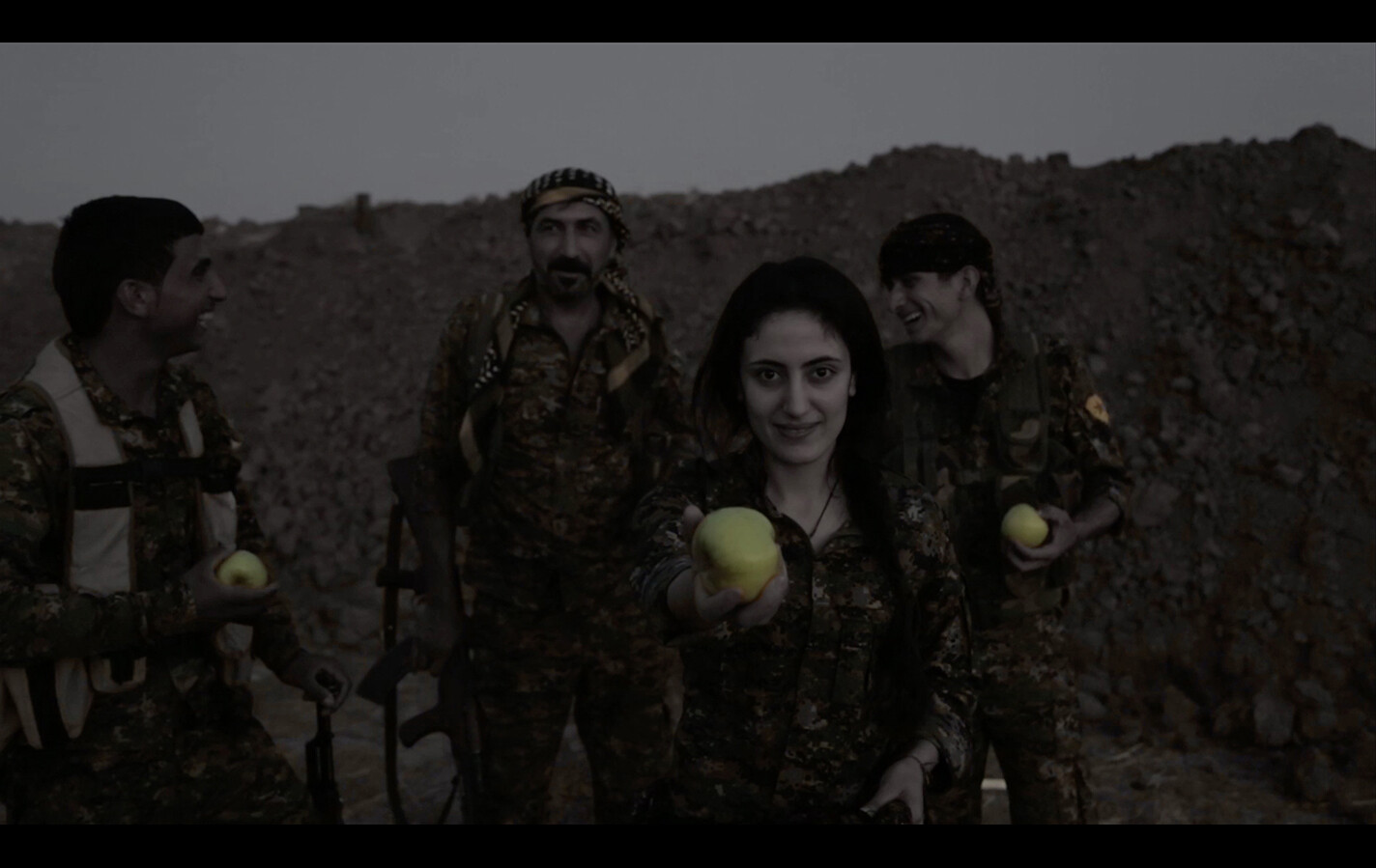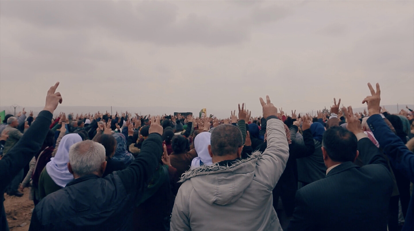 The Rojava Film Commune emerged in 2015 from the Rojava revolution with an educational aim, and to produce a new Rojavan revolutionary cinema. The dynamic collective of young filmmakers, established filmmakers, and students seeks to contribute to the development of the revolution by narrating both the history of the struggle and the possibilities it has opened for the present and for the future. As Rojava rebuilds itself politically, the Rojava Film Commune contributes to its cultural reconstruction: through the medium of video and film, they translate their newfound democratic freedom into a new artistic form. In their work, we see the cultural and artistic equivalent of what it means to self-define, to open the space— as scholar and theorist Dilar Dirik said—for ‘living without approval’ beyond the patriarchal capitalist state rejected by Rojavans. The Rojava Film Commune exposes the real desire behind producing art: to affirm the ‘living’ of life.