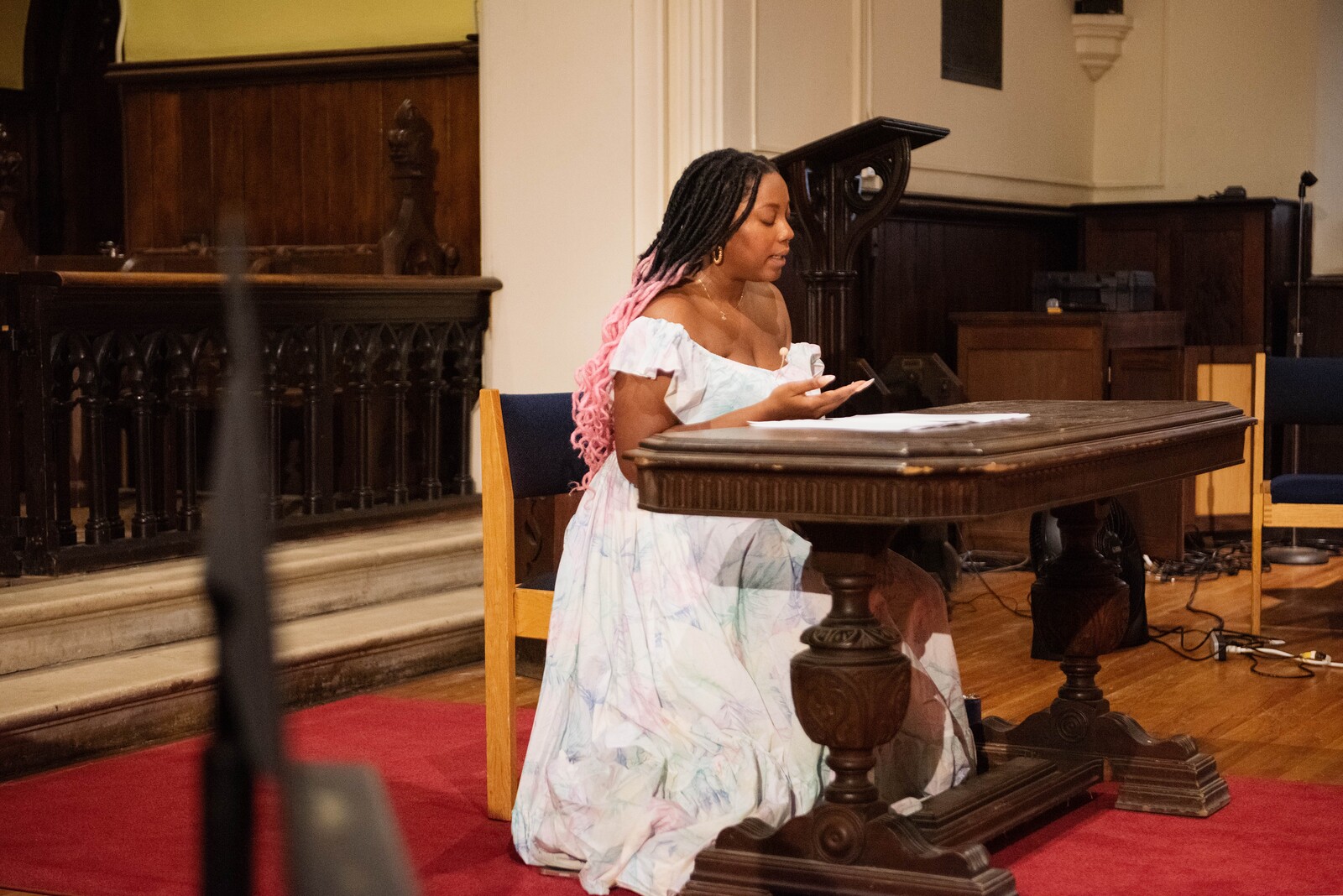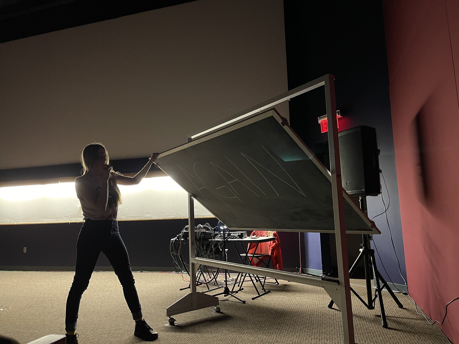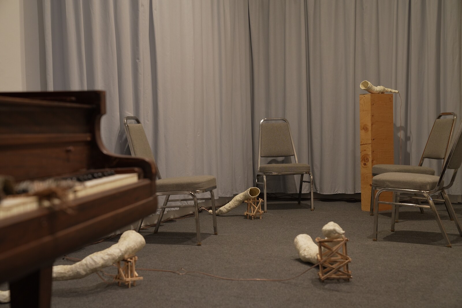 When taken together, the distinct artistic practices of the Bard MFA Class of 2024 resonate with issues of stage presence. Experimentation with display structures; activations of text in space; investigations into mapping and absence; disruption of voice and conventional notions of authorship; emphasis on the scale of the body; and integration of theatrical techniques such as props or backdrops are just a few of the strategies by which these artists explore modes of presence, viewership, and relationality.