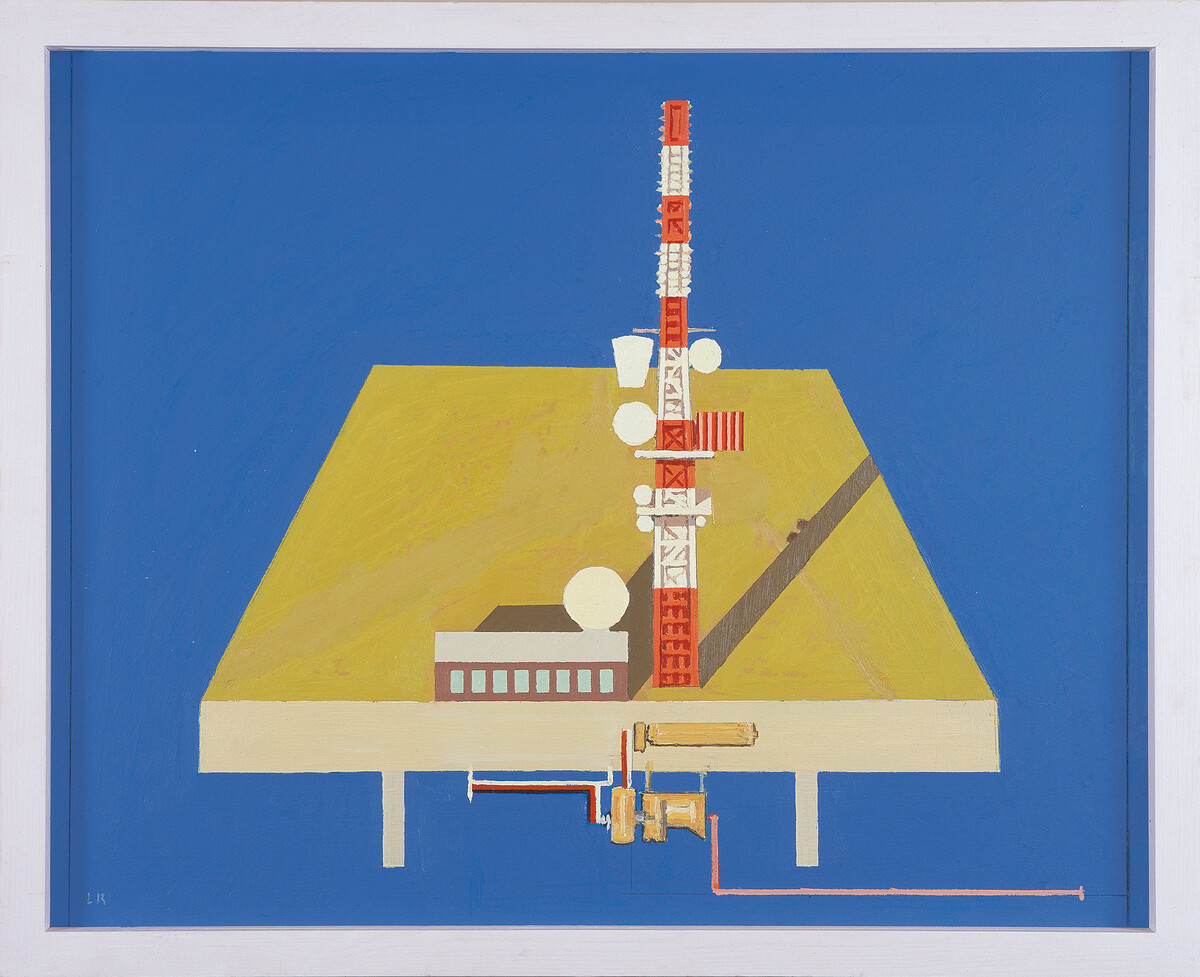 The title, Between Construction and Collapse, points to an underlying gravity in Rickhard’s works. Many of his paintings constitute a means to process memories—often personal recollections from the artist’s childhood in the immediate aftermath of World War II. As such, the paintings have a psychological dimension, perhaps manifested through a vibrating ambience where the unsaid and unspoken, rather than the expressly political, takes center stage. However, the paintings can also be read as the processing of collective memory—expressing a shared unease and fear rooted in how war encroaches upon otherwise commonplace situations.