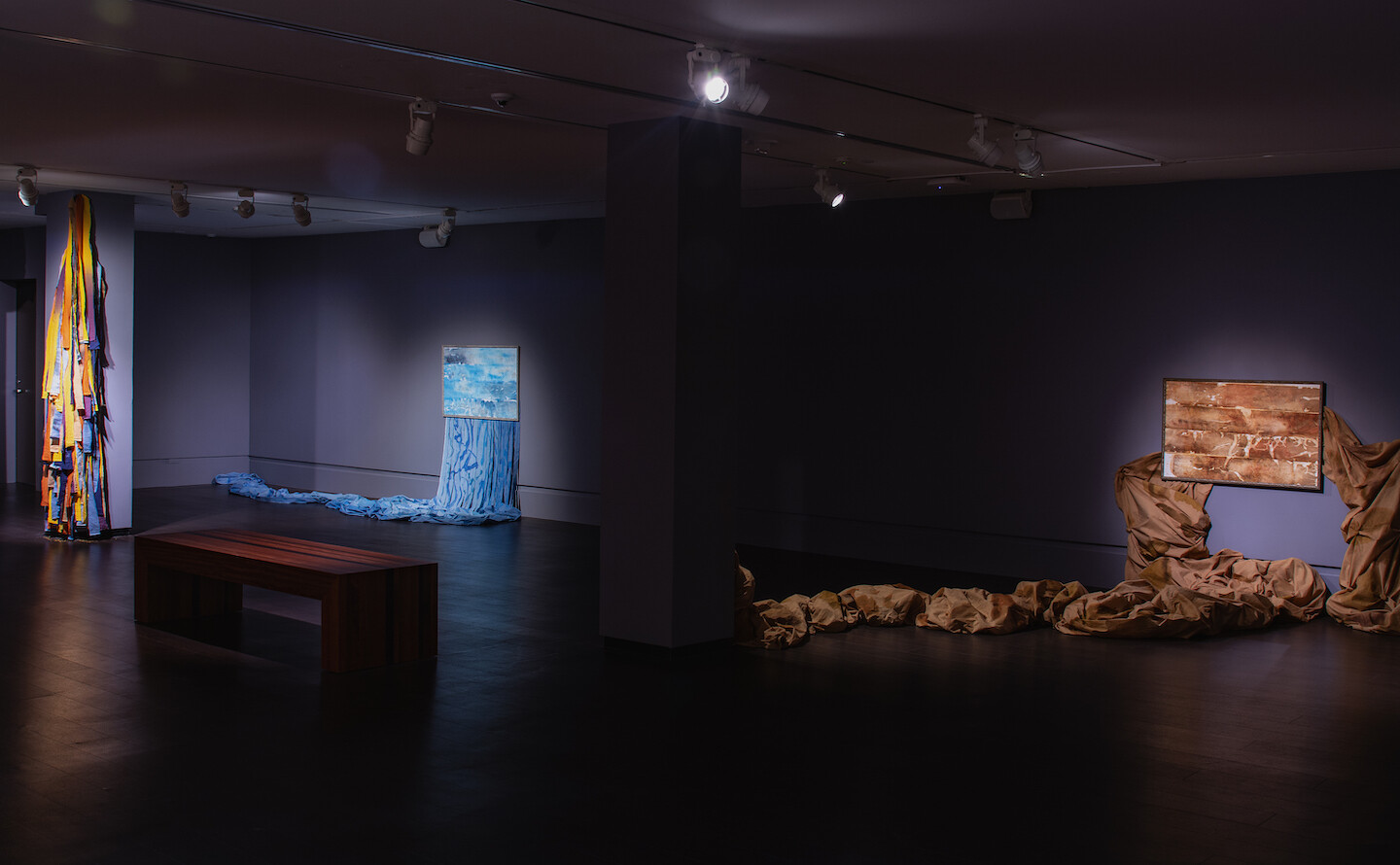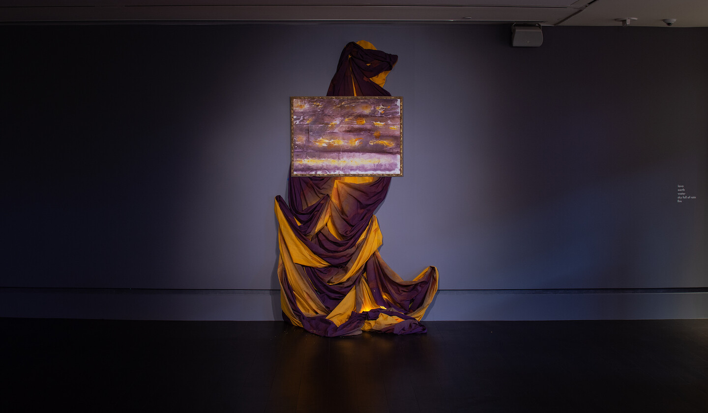 Un-Tying Our Cosmic Ancestry, premieres after a three-week long residency at AGBS by TwoTrees and collaborating sound eco-archaeologist Gideon Crevoshay. This site-specific installation of painted canvases that extend beyond their frames with dyed and manipulated cloth, and a soundscape featuring vocalized sounds, encourages visitors to consider their relationship with Nature, Spirit, and the journey home to a known, unknown, and unknowable Cosmos. TwoTrees’ artworks explore our relationship with the fluidity of time and space while encouraging a vital synthesis with Nature. For the artist, having an intimate relationship with it is essential to untangling the knots in our connection with the stellar origins we all share.