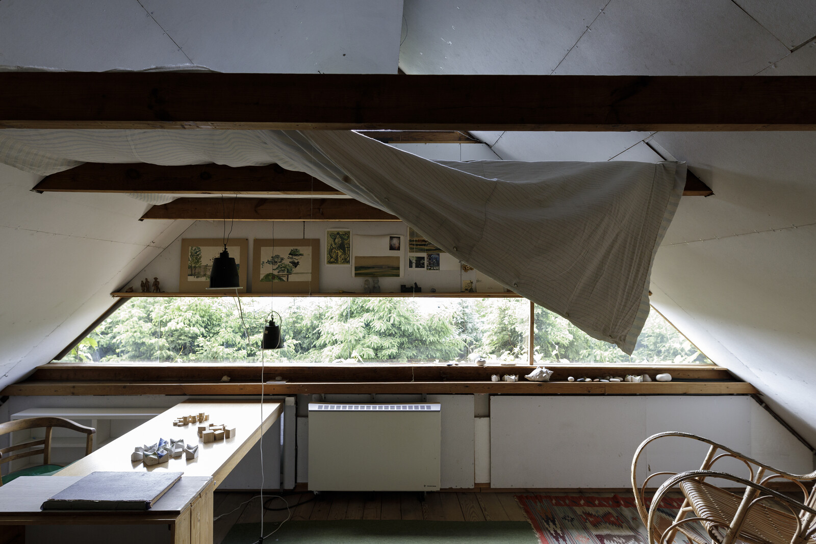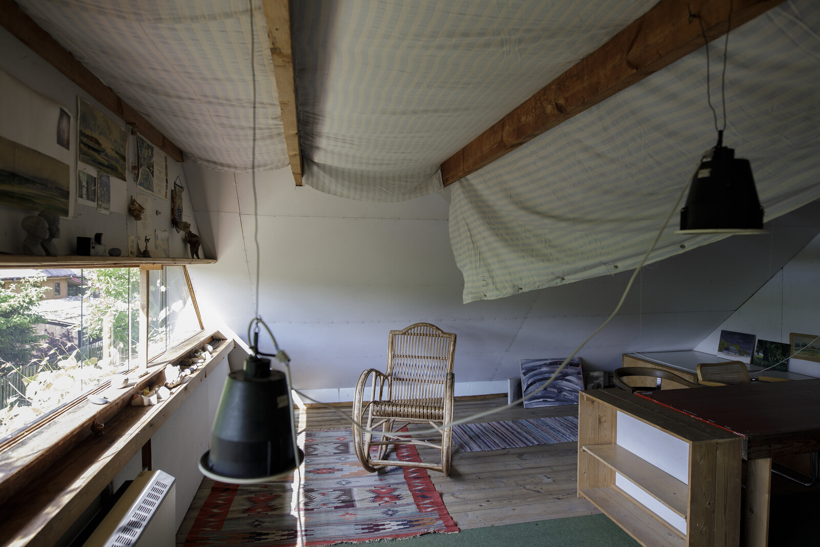 The house turned out to be a treasure trove for studying vernacular methods of heat insulation. The Hansen family clothed and unclothed their home according to the rhythm of the seasons. During heatwaves, they would place a tulle curtain in the doorway. During frosty weather, a thick, quilted fabric was nailed to the front door to insulate the hall. With the use of domestic fabrics, the Hansens could turn their spacious, airy, and open summer house into an inwardly focused, textile-clad, enclosed winter house.