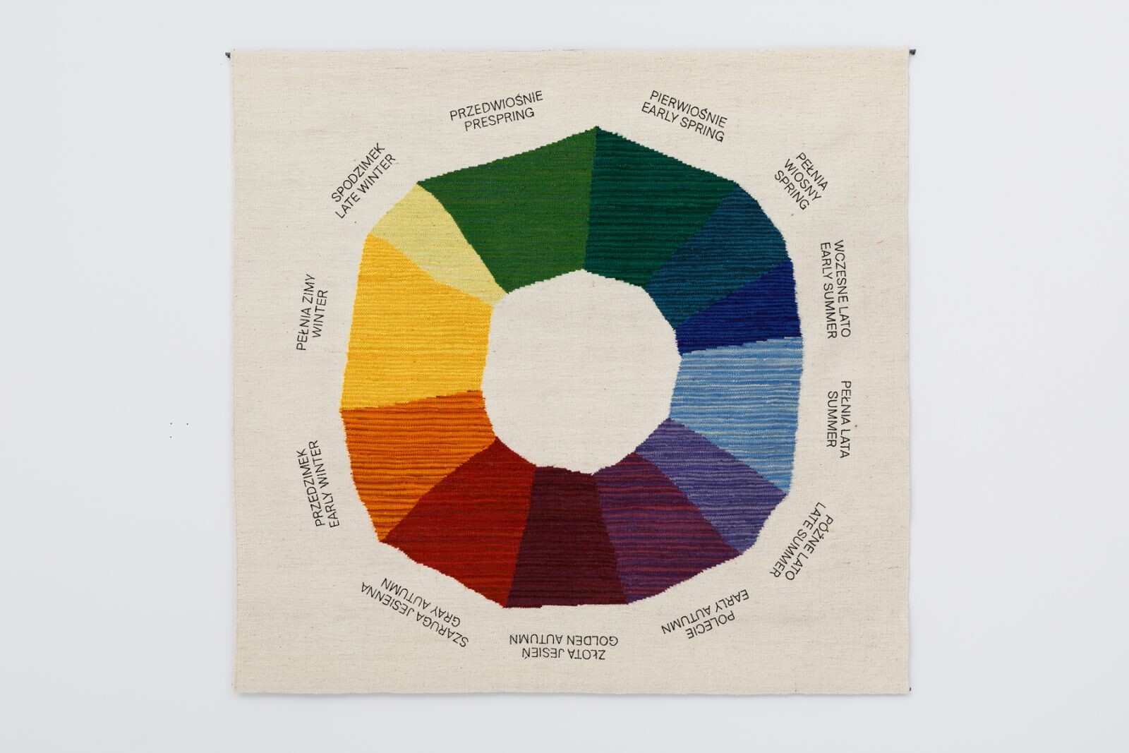 After an extensive study of photographs, paintings, and various historical spaces in Poland, we created a typology of domestic textiles that were, and sometimes still are, used in the region, corresponding with the twelve phenological seasons characteristic of the Central and Eastern European climate zone. Most of them have an insulating function. Zaplecek, for instance, provides insulation to the wall during frost in the winter and cold spells in the spring so that one may lean against it without feeling a chill. Portiera is hung around the front door to prevent cold air from entering the room when the door is open. Wałek, a draught excluder, seals gaps in doors and windows, while a parawan screens against draughts and creates a pocket of warmth for those cozying up to the fireplace. Podpinka, like the one created by Zofia Hansen from eiderdown, reduces the volume of space to be heated, and chodnik, a rug that can be used throughout the year, creates warm pathways around the house.