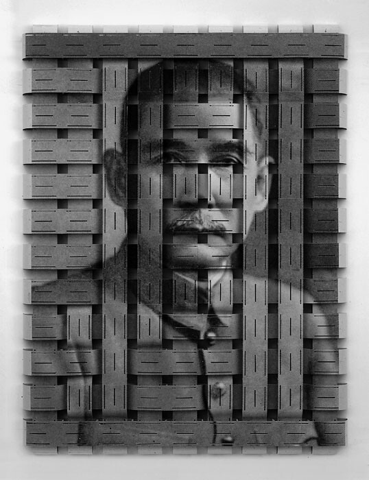 Although the political intentionality of such images can be easily deciphered, Bayrle’s approach renews the critical gaze by imposing a distance of a more spatial nature. The actual iconographic content of these works remains hazy to the inattentive observer. One has to scrutinize the cardboard tangles for a moment before the image clearly appears, before the mind uproots a vague recollection of what now seems to be part of a collective memory. The method seems to insist on the deformed reconstruction of the past as a means for questioning the present, and, indeed, perhaps the very key of Bayrle’s modus operandi was to be found jotted down in small letters on the left side of Mountain Climber (Sign for Sun): “I use distortion as an instrument.” Whether this barely visible inscription was left on the piece intentionally or not lingers as a question one prefers to leave unanswered.