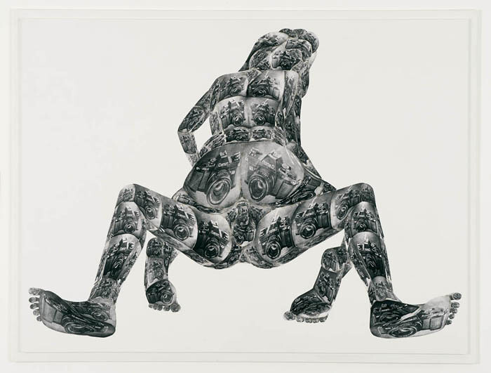 In this regard, Fuck Canon (1990/92) constitutes both a literal illustration and a mise en abyme of the critical principle that underlies Bayrle’s work. Composed from photographs of a Canon camera, the collage depicts the outline of a couple explicitly acting out the piece’s title injunction.