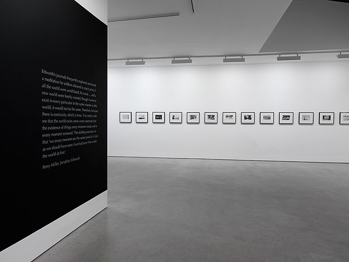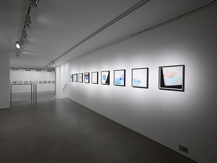 Images or shadows of divine things (2005–ongoing), an edited accumulation of seemingly disparate black-and-white shots of suburban America, shifts this concern with image and object to another remove. The work is prefixed with a wall text quoting Perry Miller on the eighteenth-century theologian Jonathan Edwards, a text itself quoted in the opening of Michael Fried’s canonical essay “Art and Objecthood” from 1967. The text posits Edwards’s notion that the contingency of time allows for the constant ceasing and non-identical renewal of things, a newness of content relative to context. The images that make up this series are of things bygone: old cars and antiquated shop displays, street scenes and old houses, which, in addition, are not all shot by Byrne, but are rather commissioned by him and so are accumulated at yet another remove. This distance, rather than portending any clarity, proposes to condense the relation between past and present things in order question their differentiated status. The notion is reiterated in Byrne’s Kodak’s Wratten filter system (1912–2012) (2013), a series depicting overlapping colored filters in a combination of stock from different eras.