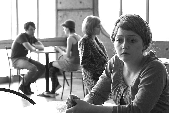 The three-channel video work Subject (2009) extends this logic from the selection of images into their temporal sequencing. On three monitors spaced throughout the room, one can see different sequences of vignettes filmed in the modernist University of Leeds expansion built between 1963–1975 by the under-appreciated Barbican architects Chamberlin, Powell, and Bon. Within these monumental environments, actors play out documents acquired by the university library archives at that time; Byrne’s material ranges widely, from 1970s articles on sexual relations on campus and broadcast radio and television debates, through to poetry readings and early twentieth-century texts on spiritualism. Each monitor displays various combinations of scenes, some with the audio entirely removed and actions rendered mute. And it’s these distantiated shifts between contextual registers that most poignantly correspond to the wall quote from Edward P. Thompson’s 1963 preface to The Making of the English Working Class, which posited class as a historical relationship rather than a thing.