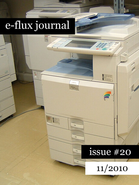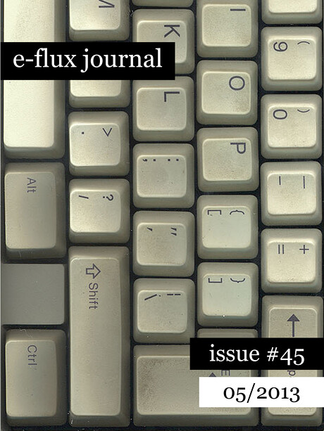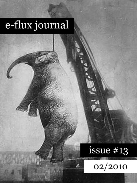 Launched in 2008, e-flux journal is a monthly art publication featuring essays and contributions by some of the most engaged artists and thinkers working today. The journal is available online, in PDF format, and in print through a network of distributors.