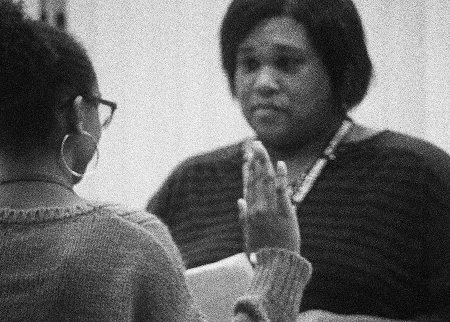 If there is one film that most powerfully underlines the stakes of rehabilitating observation, it is Tonsler Park (2017), Kevin Jerome Everson’s eighty-minute portrait of workers at a polling station in the titular area of Charlottesville, Virginia, on November 8, 2016—the day the current president of the United States was elected. Using black-and-white 16mm film, Tonsler Park consists of a series of long takes of the mostly African-American women who facilitate the voting process for members of the local community. For privacy reasons, Everson did not record synchronized sound; instead, images shot with a telephoto lens are accompanied by wild sound captured in the same place and on the same day, though not at precisely the same moment as the image. This slight cleavage of image and sound ruptures any possible impression of total capture, ushering the film away from discredited notions of immediacy. This refusal of mastery is buttressed by the position of Everson’s camera, which is out of the way, at some distance from the poll workers who form the ostensible focus of the scene. People pass frequently in front of the lens, close enough that only their torsos are visible. They intermittently fill the frame with vast fields of grey and black, creating what Everson has called, with reference to that most reflexive of avant-garde film genres, a “human flicker.” The fullness of this reality does not yield to the camera. It is grainy, monochrome, obstructed. Vision is blocked, yet the film demands that we look nonetheless, that we look closely at an event at once quotidian and historic, at people and activities that might otherwise never be held up to view.