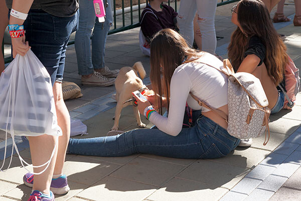 Many influencers fall under the category of “creators”—paraprofessional creatives who post highly personal, confessional content of the kind that moves easily from “I’m feeling sad about my cat’s herpes,” to “I love this CBD water, I can’t help it,” to “#metoo.” Social-media celebrity is always already pitched somewhere between the inaccessible and the local; it exists in some virtual elsewhere that could stand in for anyone’s hometown or living room. Importantly, many of these videos are recorded within domestic spaces. They also land on a spectrum between specificity and generality, with their main appeal being the increasingly particular moments that make them “so relatable.” This relatability resonates particularly with kids and teens who annually convene by the tens of thousands at conventions such as VidCon to meet their friends and idols, shrieking in droves across the Anaheim Convention Center, whipping innocent bystanders with their plush tails and the tassels of their knitted animal hats, knocking down the occasional Minion mascot—all to capture a selfie with someone named FaZe Rug.