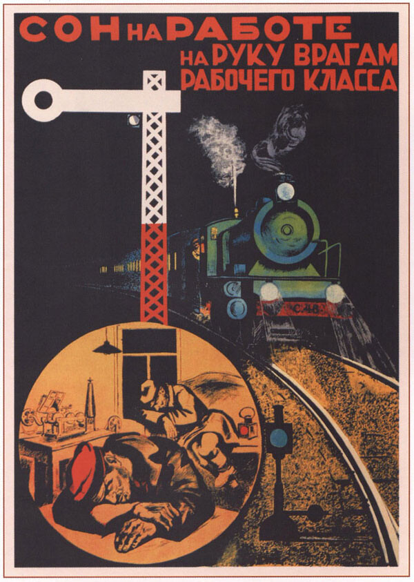 Soviet poster, date unknown. The poster reads “Sleeping at work/ Helps the enemies/ Of the working class”