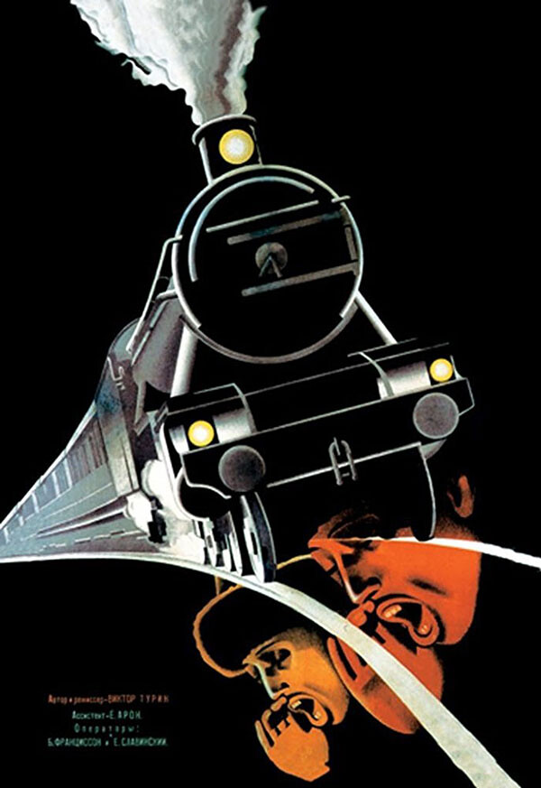 Poster for the Soviet documentary by Viktor Alexandrovitsh Turin, Turksib (1929), which retells the story of the construction of the Turkestan–Siberia Railway.