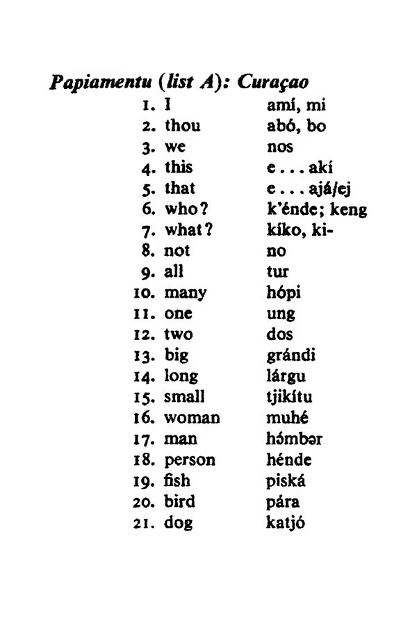 I would have liked to come to you (abo) with something more reliable, like documents (akto), but I’m an oral language (idioma)—an Afro-Portuguese proto-creole developed on the western coast (kosta) of Africa and brought over to the Caribbean in the seventeenth century. That’s one of the theories of my genesis. There are others (otronan). Dutch and Spanish tagged along at later stages, with a few Arawak words (palabranan). Initially, slave traders and slaves used me to “communicate”; then I was just used (merka). The only document in my possession says I was born on the island of Curaçao, north of the Venezuelan shore. Linguists struggle to match my identity to a location. Words travel and land in places (luganan) that do not match their jurisdiction (a nation (nashon)-state).